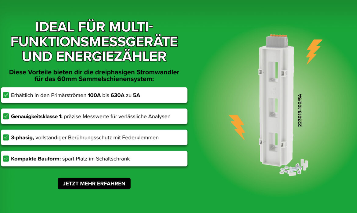 Präzise. Kompakt. Sicher.Der Stromwandler für das 60mm Sammelschienensystem ist erhältlich in den Primärströmen 100A bis 630A zu 5A – ideal für Multifunktionsmessgeräte und Energiezähler.Er ermöglicht eine zuverlässige Strommessung ohne direkten Kontakt zur Hauptleitung. 💡 Highlights:✅ Genauigkeitsklasse 1✅ Dreiphasige Ausführung✅ Kompakte Bauform für platzsparenden Schaltschrankaufbau✅ Kompatibel mit 60 mm Sammelschienensystemen🏭 Anwendungen:• Industrie- und Gewerbeverteilungen• Energiemessung und Lastüberwachung• Anlagen mit 60 mm Sammelschienensystem⚠️ Sicherheitshinweis:Der Sekundärkreis darf...