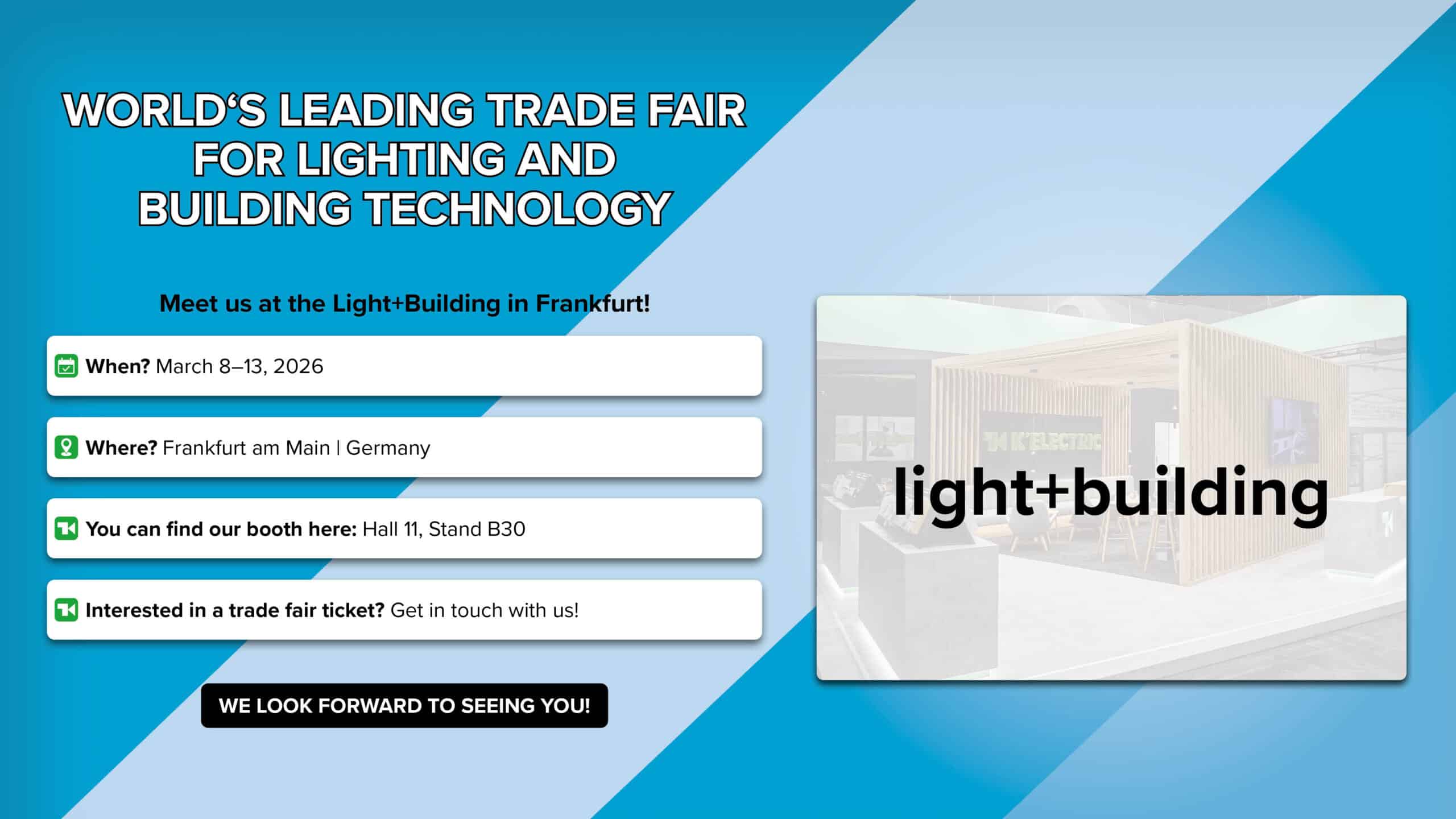 From March 8 to 13, 2026, you can find us at Light + Building in Frankfurt am Main. 💚